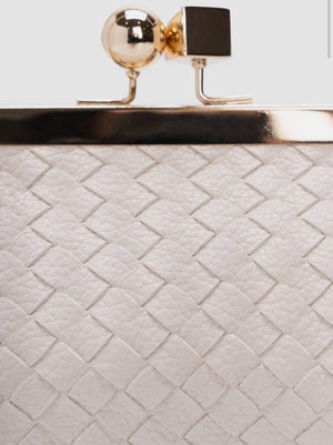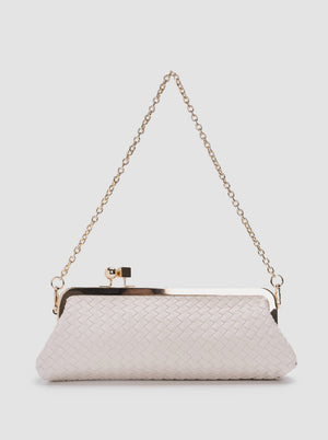 Charlotte Bag’s beige con dettagli oro, tracolla regolabile catena oro chiusura Clips.