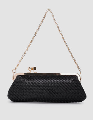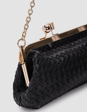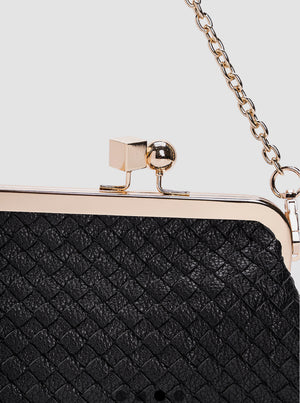 Charlotte Bag’s nera con dettagli oro, tracolla regolabile catena oro chiusura Clips.