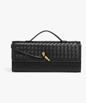 Emy bag’s nera intrecciata, tracolla regolabile, più manico, dettagli ottonati.