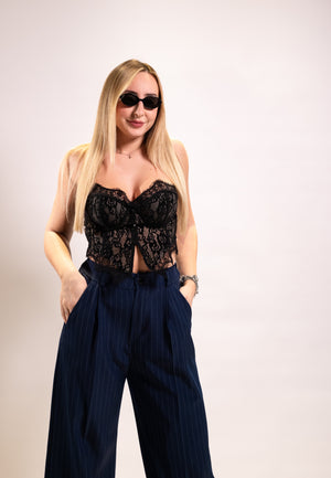 Bustino nero Paris, tessuto elasticizzato, chiusura zip sul retro.