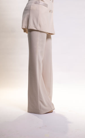 Tailleur color Avorio, composto da Blazer doppiopetto con rever in raso e pantalone zampa.