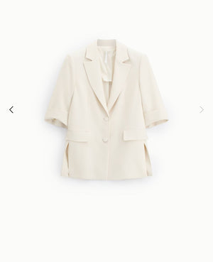 Blazer con design monopetto, caratterizzato da maniche corte con risvolto e spacchi laterali che aggiungono dinamismo alla silhouette. Le ampie tasche con patta esprimono funzionalità e attenzione ai dettagli, ideale per un guardaroba versatile e contemporaneo. Perfetto per creare molteplici abbinamenti grazie alla vasta gamma di colori proposti.